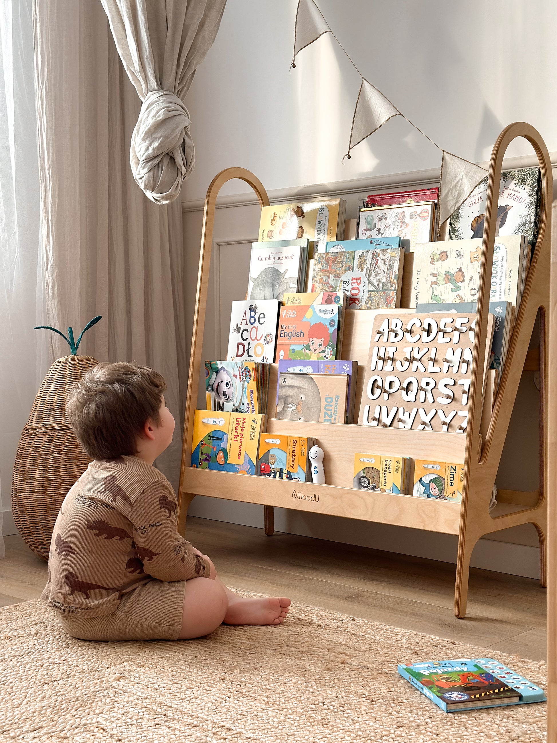 Zwykłe półki ukazują jedynie grzbiety książek, co może utrudniać dzieciom samodzielne odnajdywanie tytułów. Mamy jednak rozwiązanie! W naszej biblioteczce Woodu to okładki przyciągają uwagę, dzięki czemu Twoje dziecko może samodzielnie wybrać ulubioną książkę bez pomocy dorosłych.